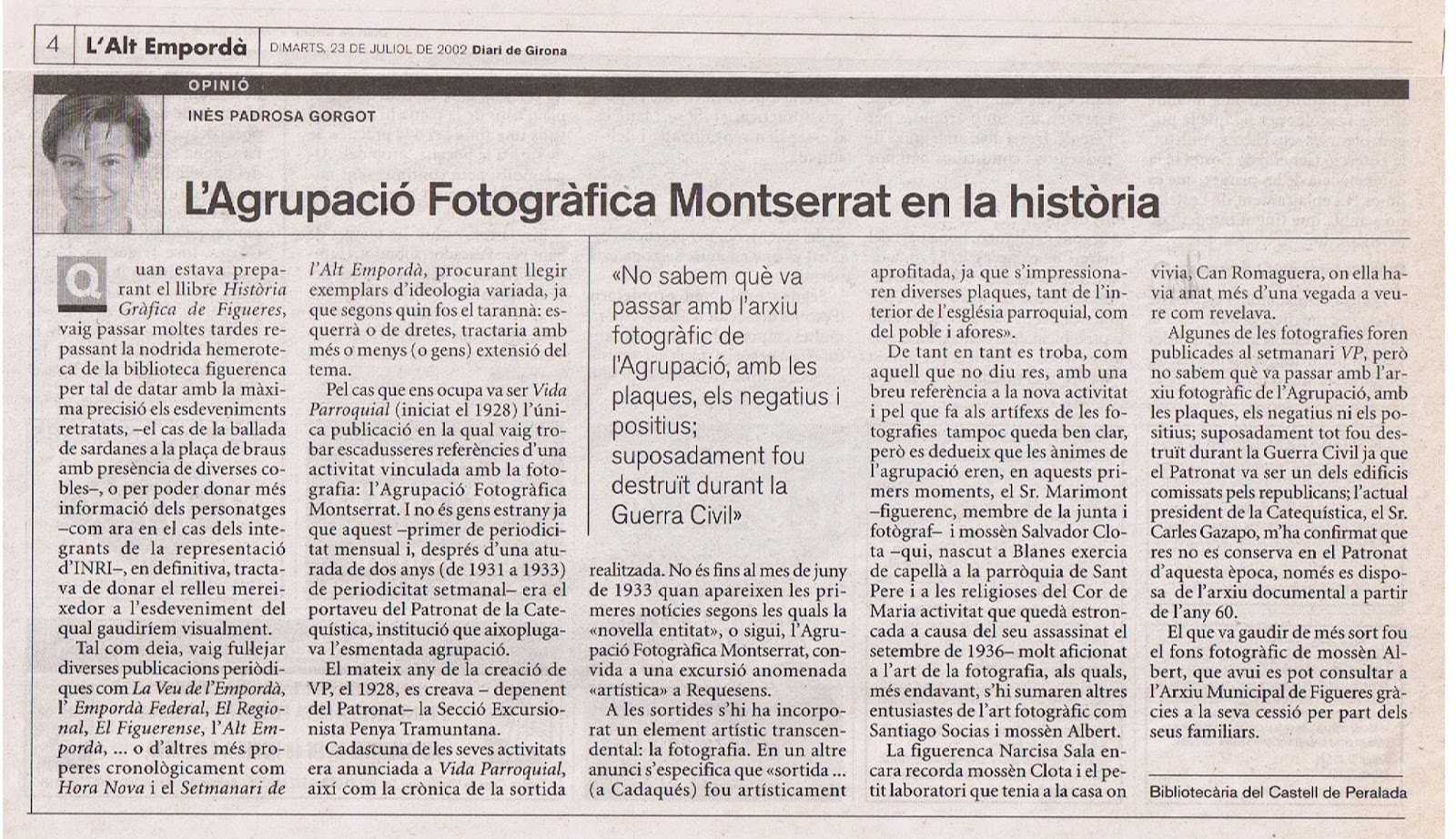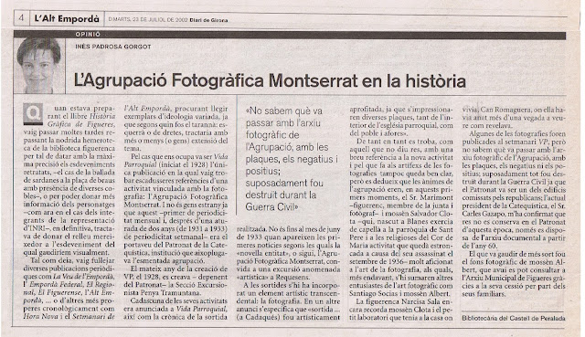 “L’Agrupació Fotogràfica Montserrat en la història”, 22 de juliol de 2002