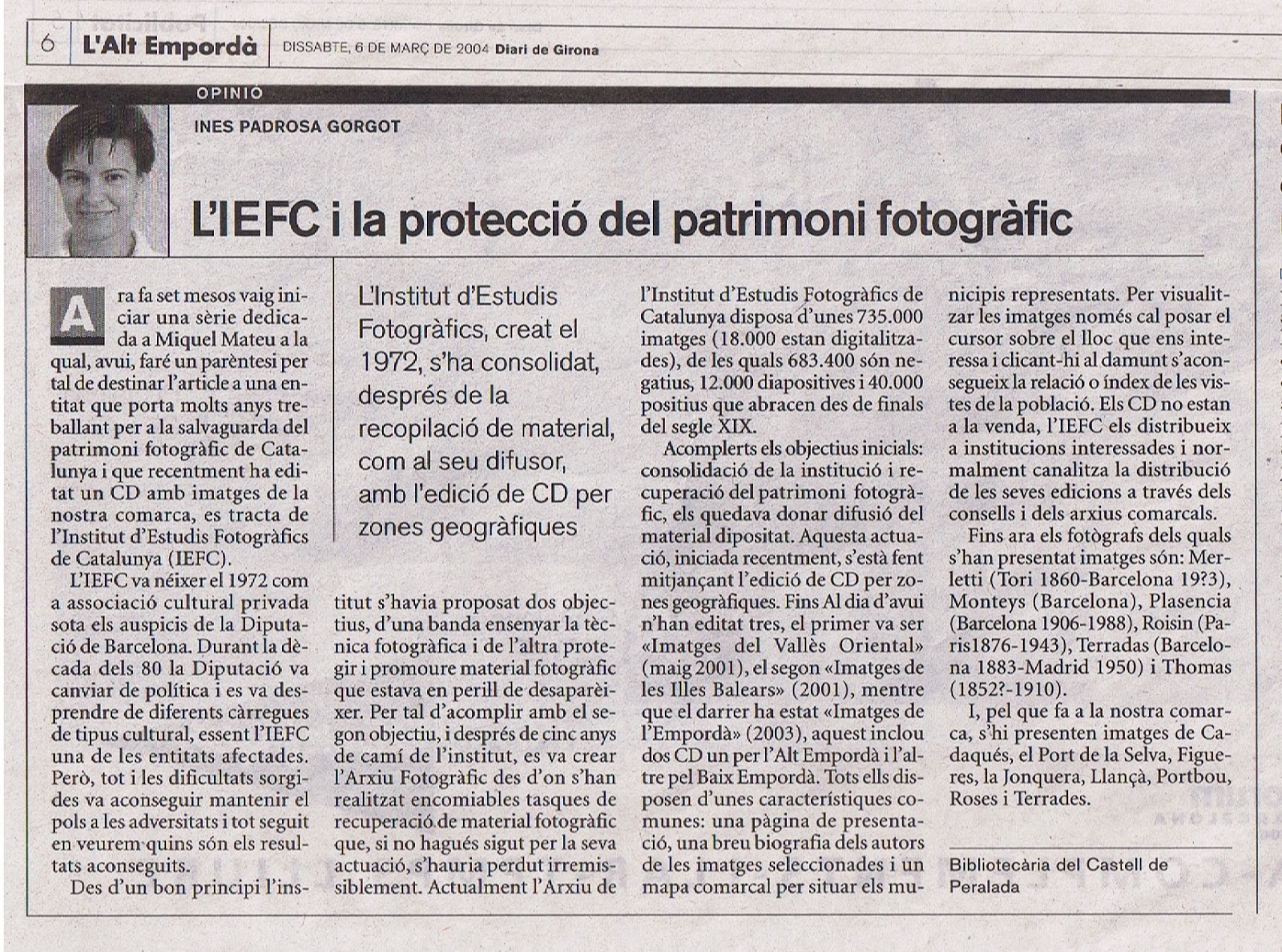 “La protecció del patrimoni fotogràfic” Revista de Girona, L (2004), núm. 225, p. 93.
