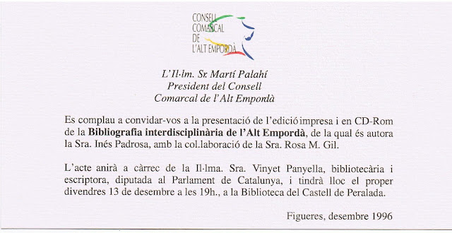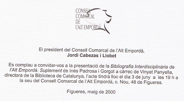 También antes de seguir adelante quiero felicitar a Inés Padrosa por el excelente y útil libro, rebosante de erudición, que ha hecho; y cuyas virtudes acaba de explicarnos, la Directora de la Biblioteca de Figueres, de manera insuperable. Gracias Inés por tu trabajo.