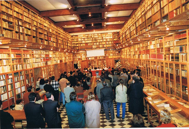 | La presentació de la "Bibliografia..." a la Biblioteca del Palau de Peralada, l'any 1996. |