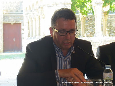 | Joan Domènec, director dels Quaderns, en el moment del parlament. |